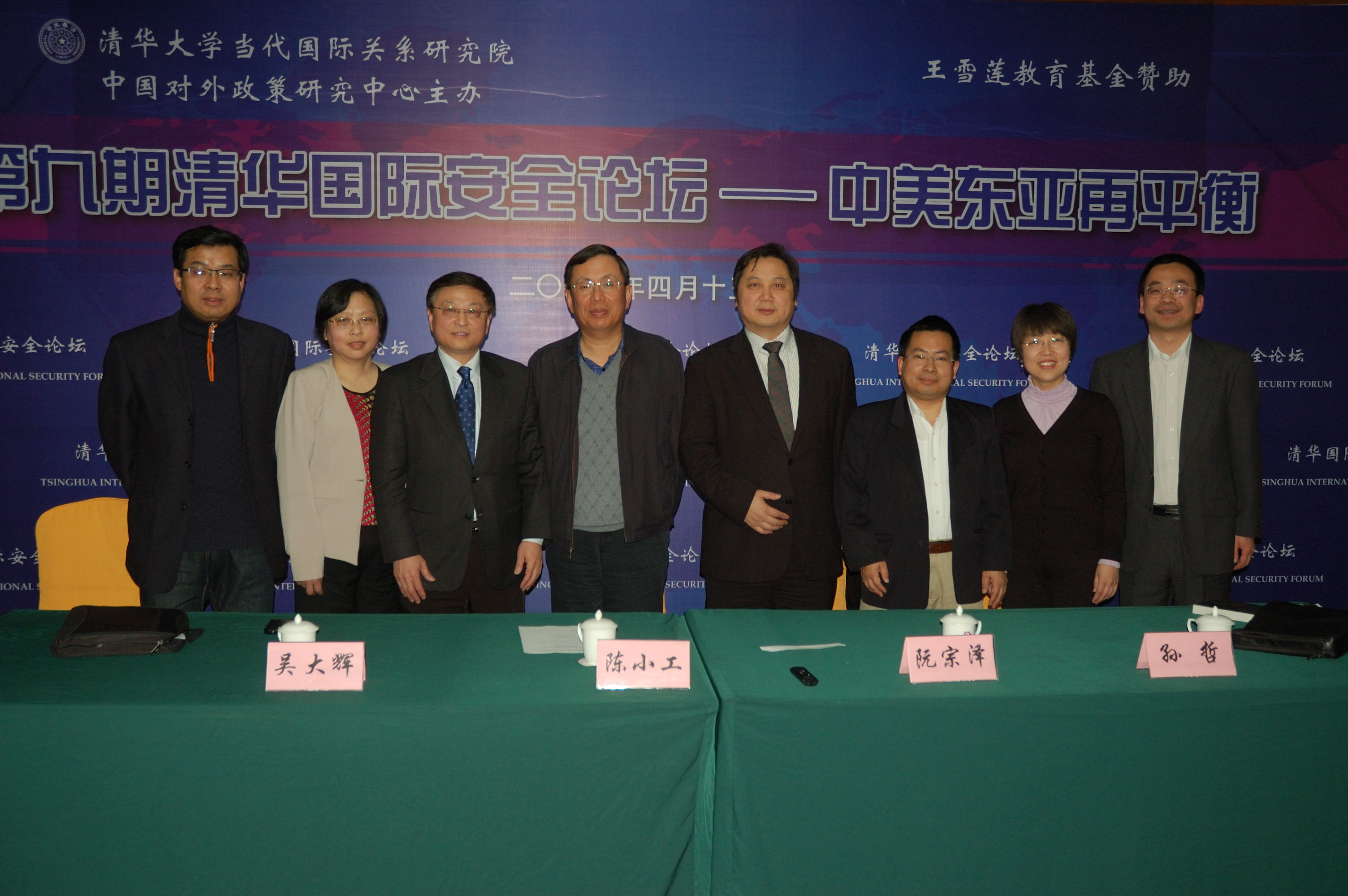 2013年4月13日,第九期清华国际安全论坛在清华大学紫光国际交流中心一层紫悦厅举行。此次论坛的主题为“中美东亚再平衡”,共包括领导致辞、研讨会和提问与回答三个环节。